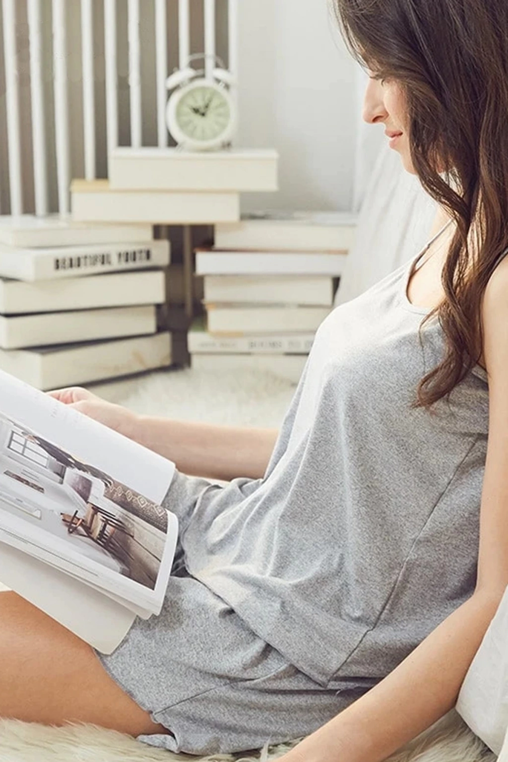 Kadın Gri Askılı Crop Top ve Şortlu Gecelik Takım