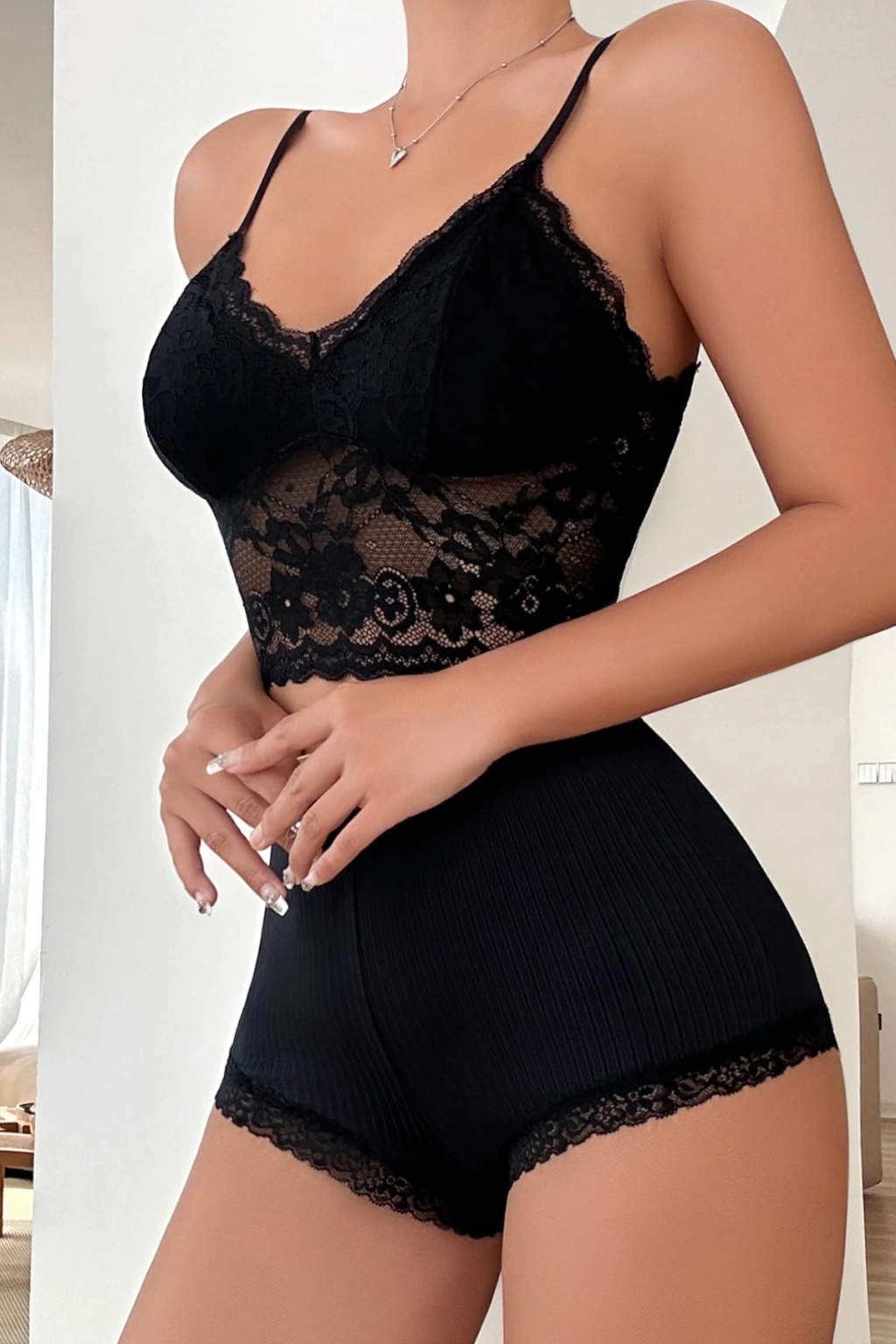 Kadın Siyah Alt Ve Üst Dantel Detaylı Şortlu Gecelik Takımı