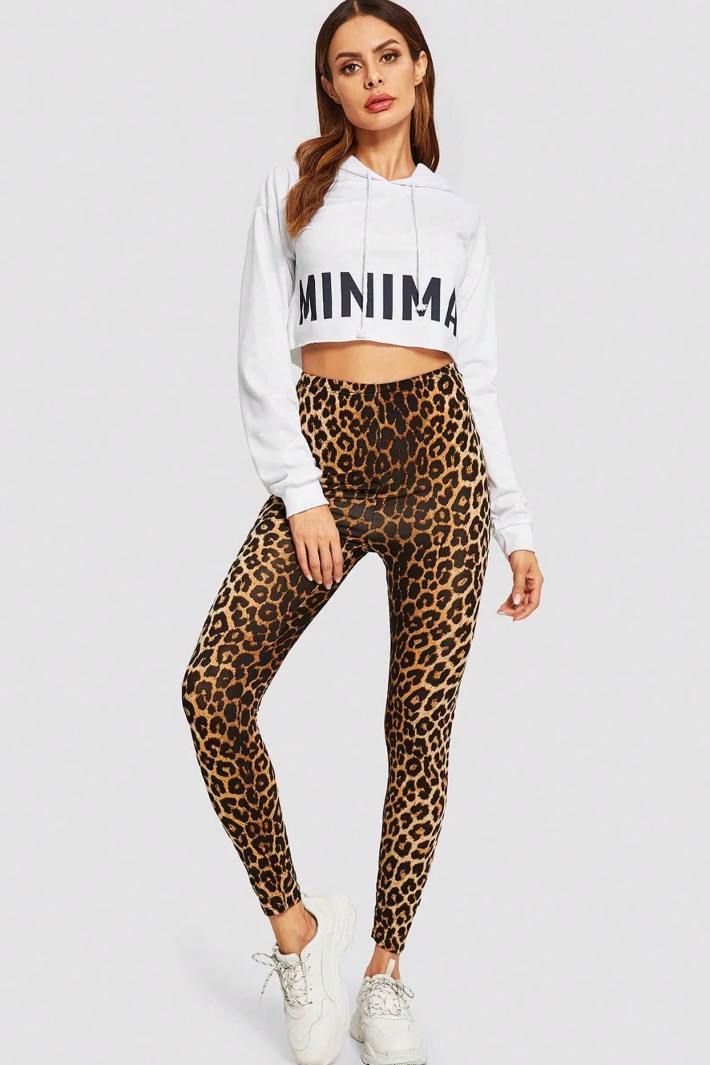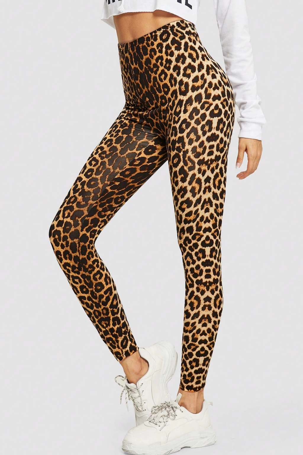 Leopar deseniyle dikkat çeken yüksek bel dar tayt, spor şıklığınızı tamamlar.