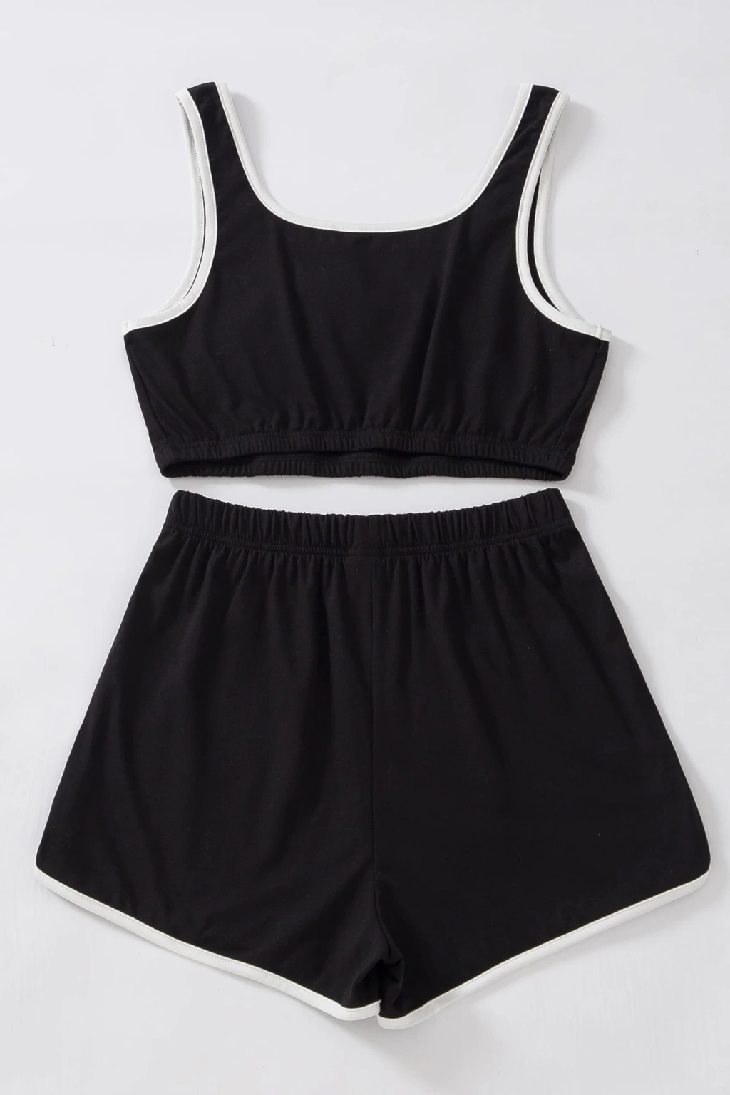 Kadın Siyah Askılı Crop Top ve Şortlu Gecelik Takım