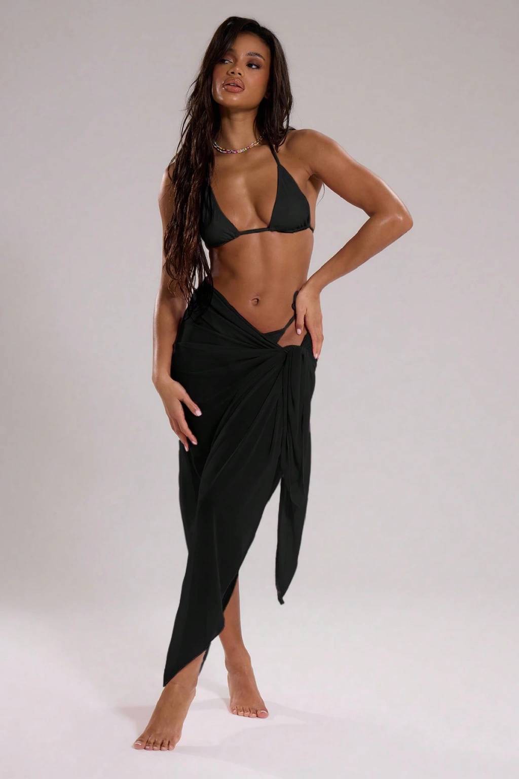 Kadın Siyah Çapraz Bağlamalı Crop ve Pareo 2'li Set