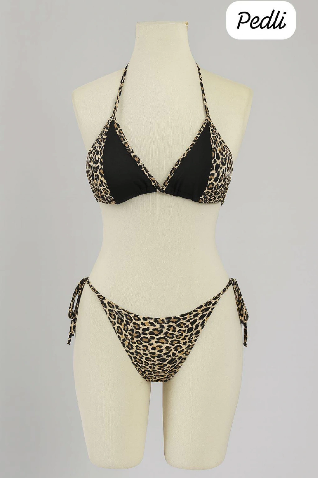 Zarif leopar deseniyle dikkat çeken bu bikini takımı, plaj modasına şık bir dokunuş katıyor.