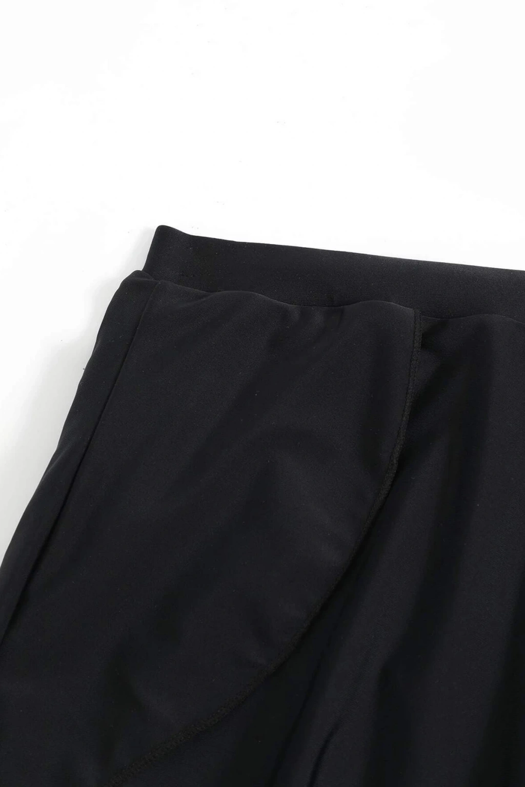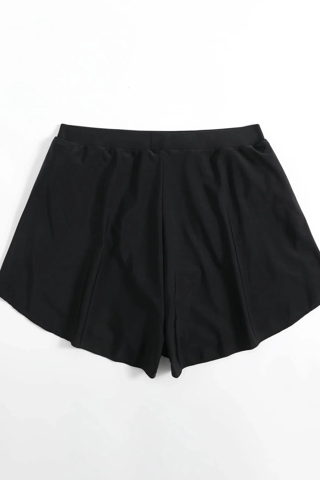 Kadın Siyah Yırtmaçlı Etek Görünümlü Şık Deniz Şortu
